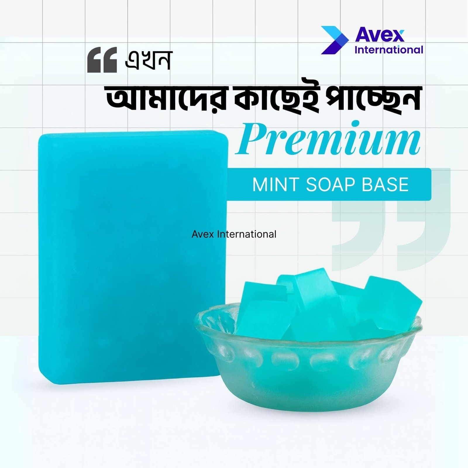Mint Soap Base হলো melt & pour হ্যান্ডমেড সাবান তৈরির জন্য একটি বিশেষ raw material। এতে থাকা natural mint extract ত্বকে দেয় cooling effect, সতেজতা এবং আরামদায়ক অনুভূতি। Avex International থেকে সরবরাহকৃত Mint Soap Base 100% authentic এবং skin–friendly।